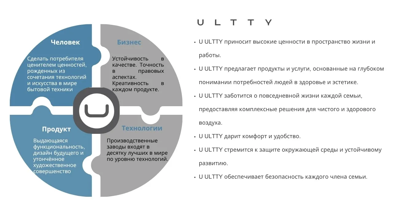 ULTTY обязуется повышать качество жизни, предлагая комплексные решения для чистого, здорового, комфортного и стильного воздуха для каждой семьи в России.