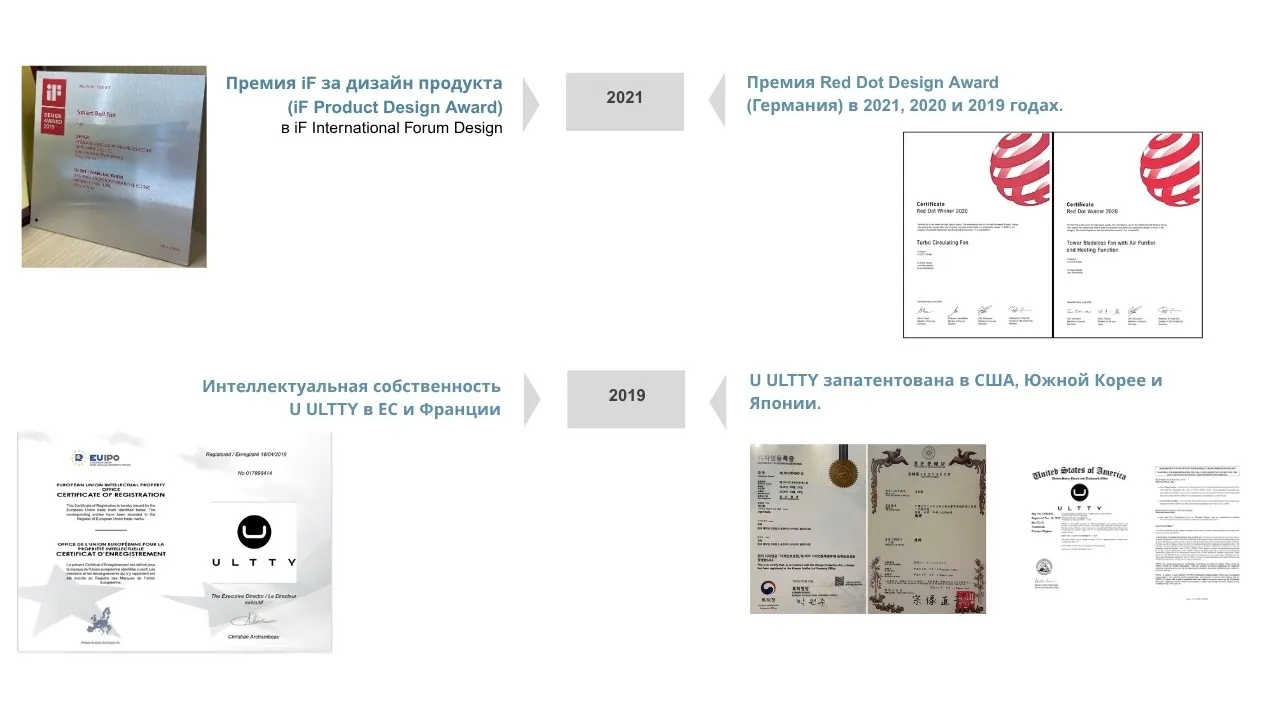Высокое качество и "High-end fashion" дизайн ULTTY были признаны на престижных международных форумах. Наши продукты не только защищены с точки зрения промышленного образца, но и получили множество авторитетных дизайнерских наград:
